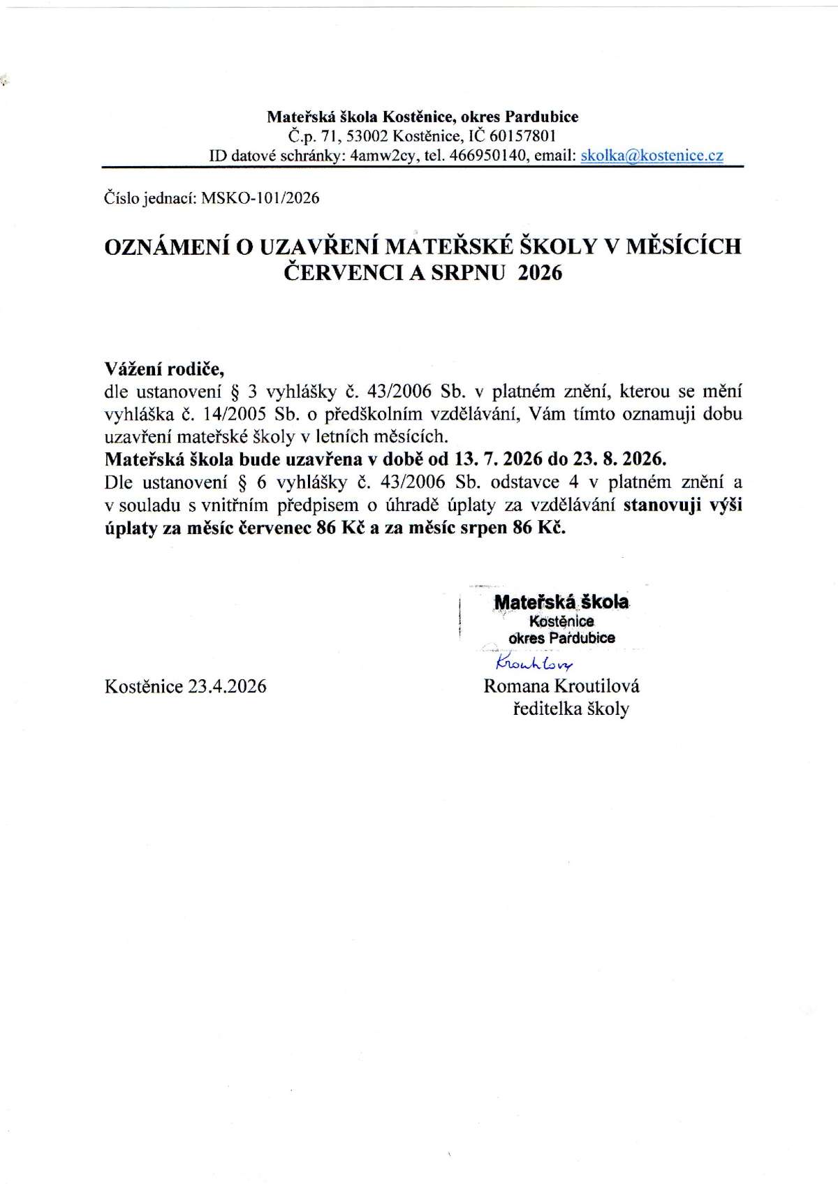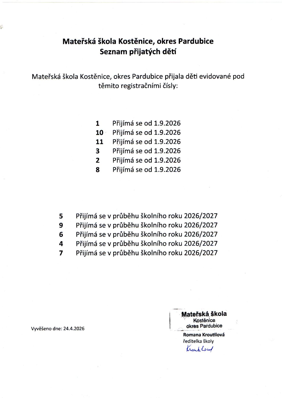 26.03.2026Vyhlašujeme termín zápisu do Mateřské školy na dny 9.4. 2026 a 10.4.2026